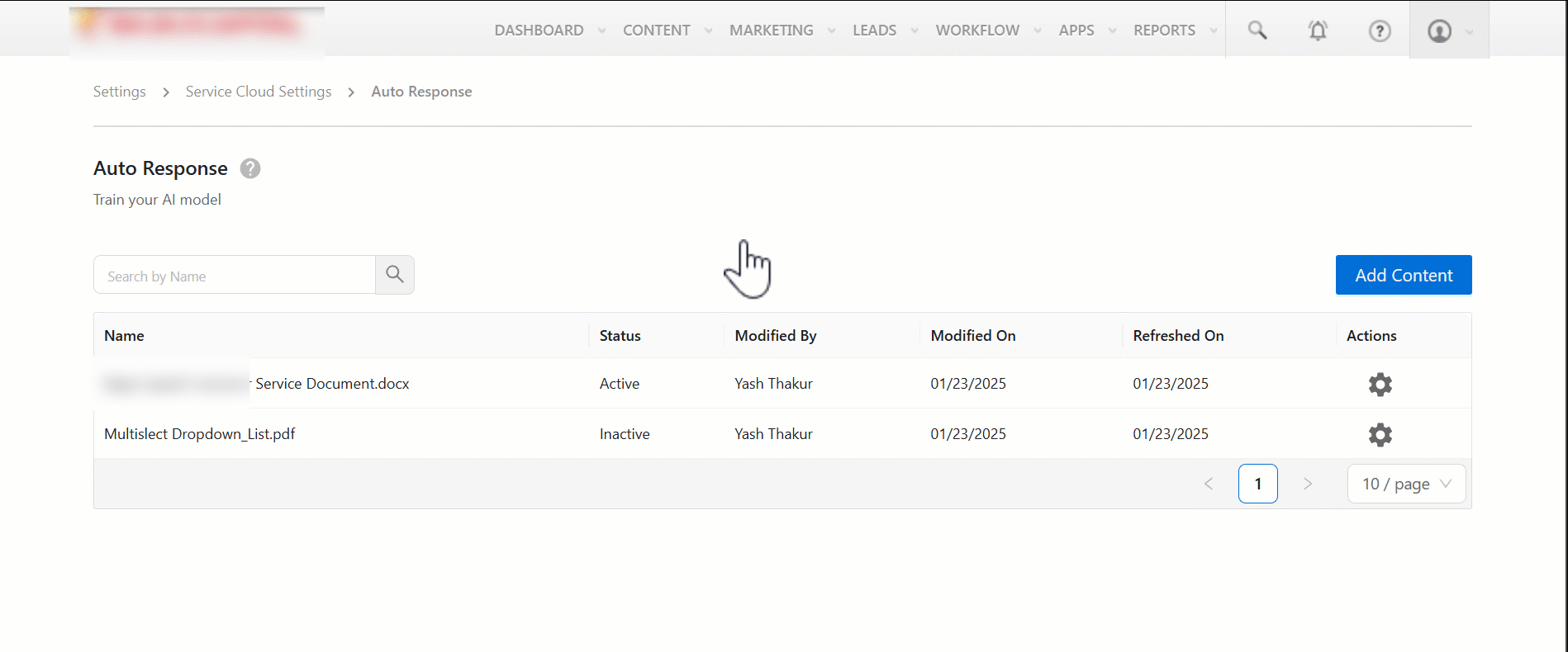 Service CRM uses LeadSquared’s in-house AI, Lexi AI, to enhance the email conversations feature on the Ticket Details page. Auto Response allows you to train the email bot to assist agents in drafting these Smart Replies using the AI Assist feature during customer interactions. You can use website PDFs, Excel, and Word documents containing relevant training material to train our AI model.